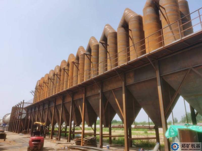 物料不斷向窯頭方向運動,到達窯頭后,物料里面含有的鋅90%以上都被提取,剩余的殘渣落入到窯頭平臺下的冷水渣池內,通過裝載機定期外運。